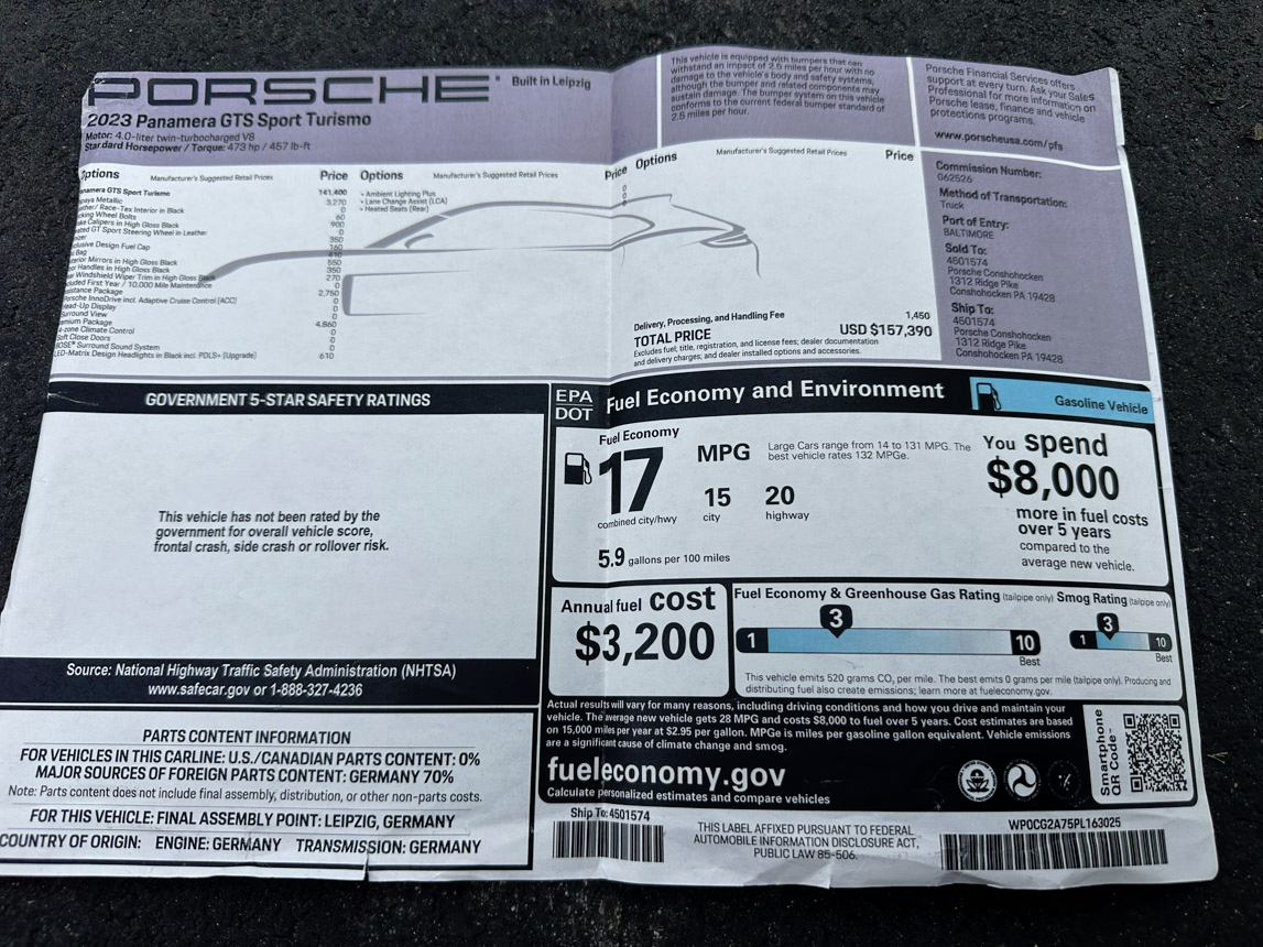 Vehicle Inquiry for 2023 Porsche Panamera GTS Sport Turismo